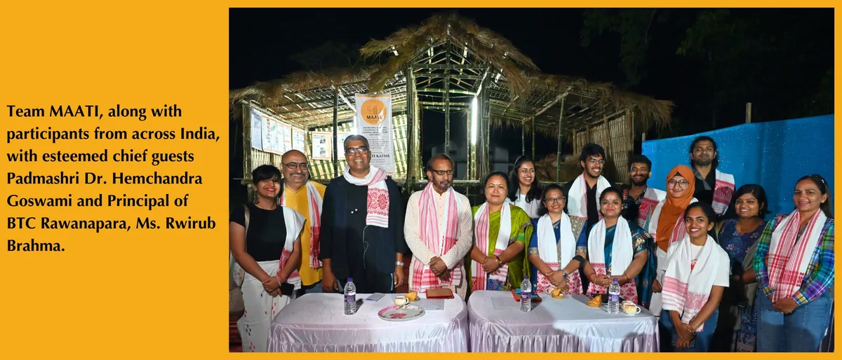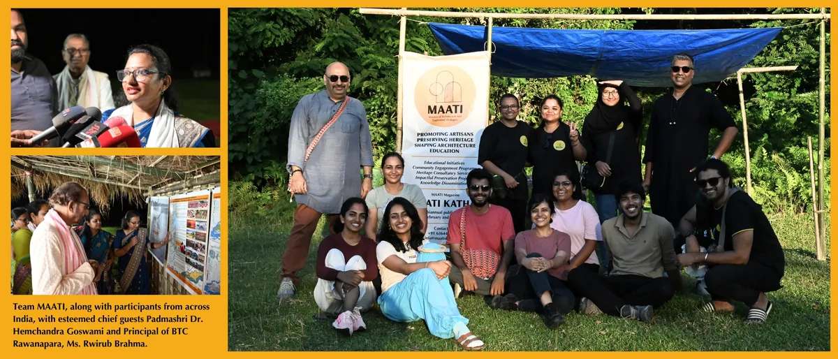 Internationally renowned mask-making artist Padmashri Dr. Hemchandra Goswami along with Principal BTC (Basic Training Centre) Rawanapara, Mrs. Rwirub Brahma was the chief guest to grace the valedictory ceremony wherein the bamboo structure was inaugurated and was opened for the local community to use henceforth. The workshop’s goal was to safeguard and share the invaluable traditional knowledge and techniques that characterize the world’s largest river island, Majuli. The workshop was led and coordinated by the respective team members of MAATI, Ar. Zarna Shah, (Founder and Principal Architect), Ar. Sanjukta Das (Mid-level Principal Architect), Ar. Maria Khan (Junior Architect).
